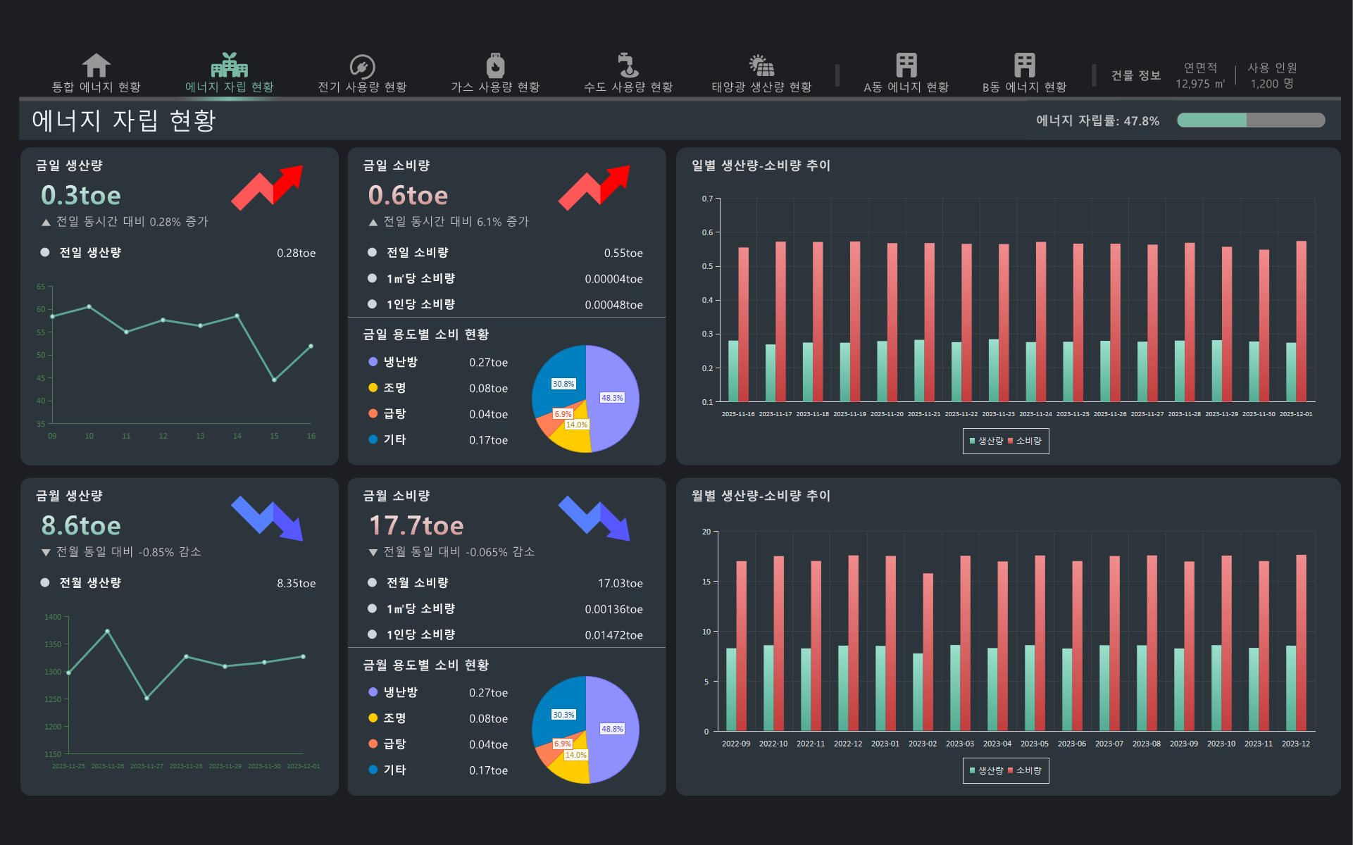 • 에너지 현황을 한 눈에 보여주는 대시보드